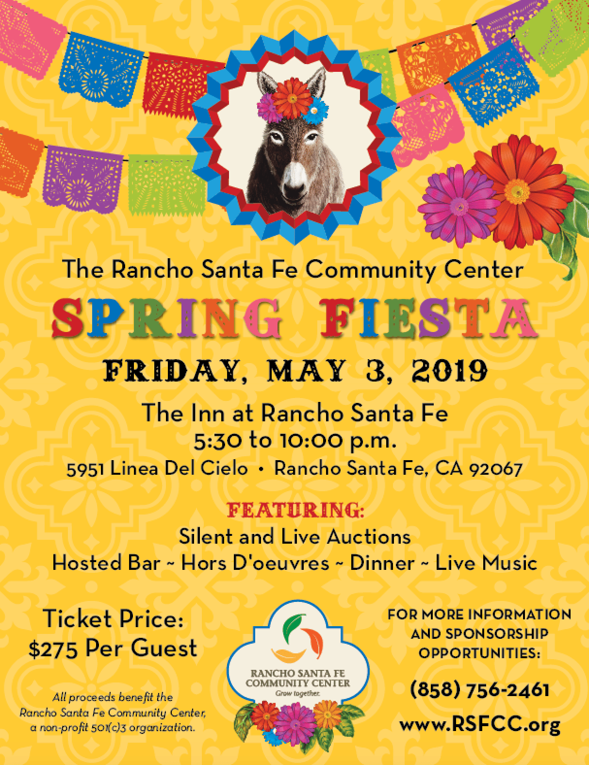 The Rancho Santa Fe Community Center recently announced its major fundraiser of the year titled “2019 Spring Fiesta” to be held Friday, May 3, 5:30-10 p.m. at The Inn … Read more
